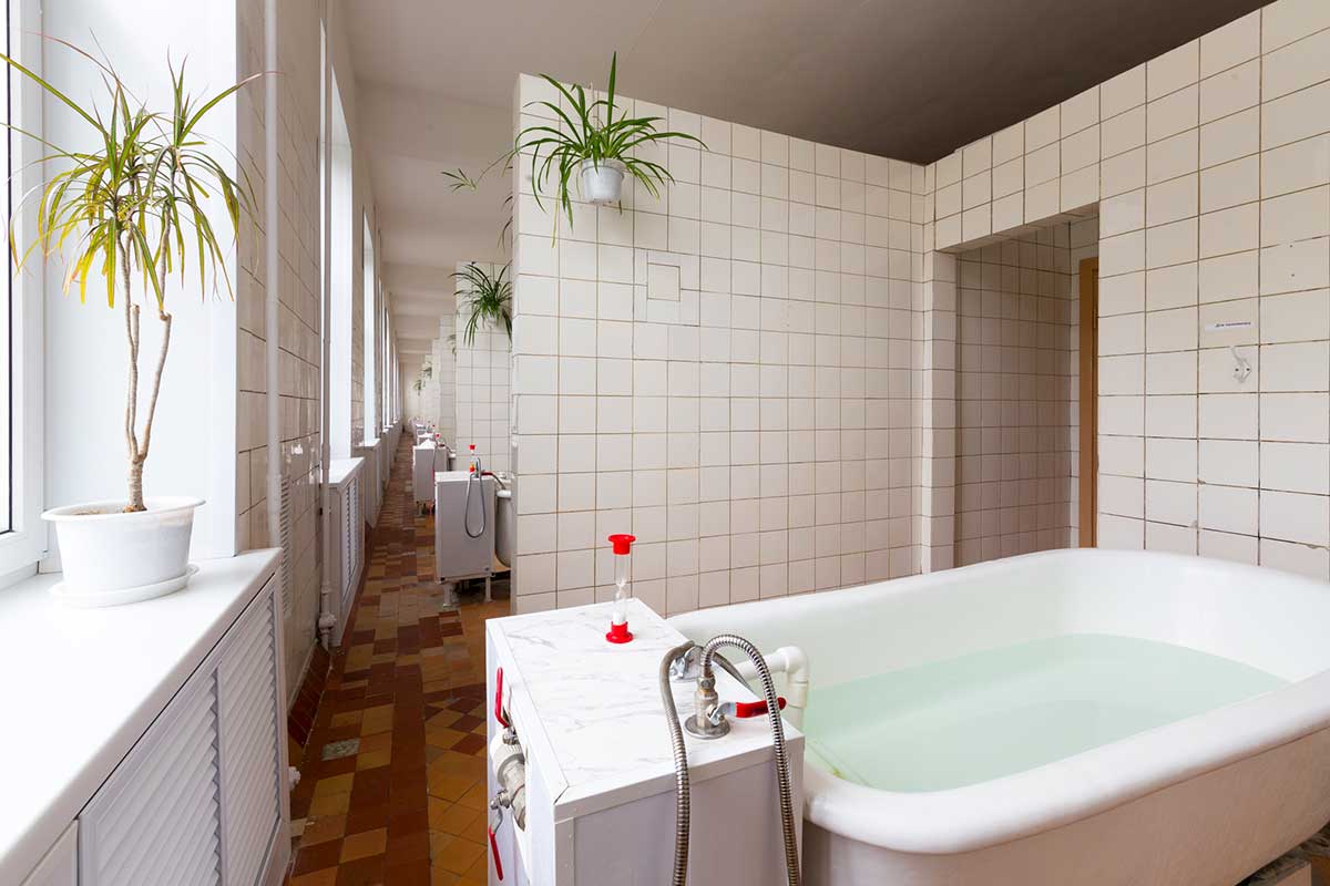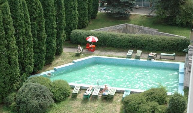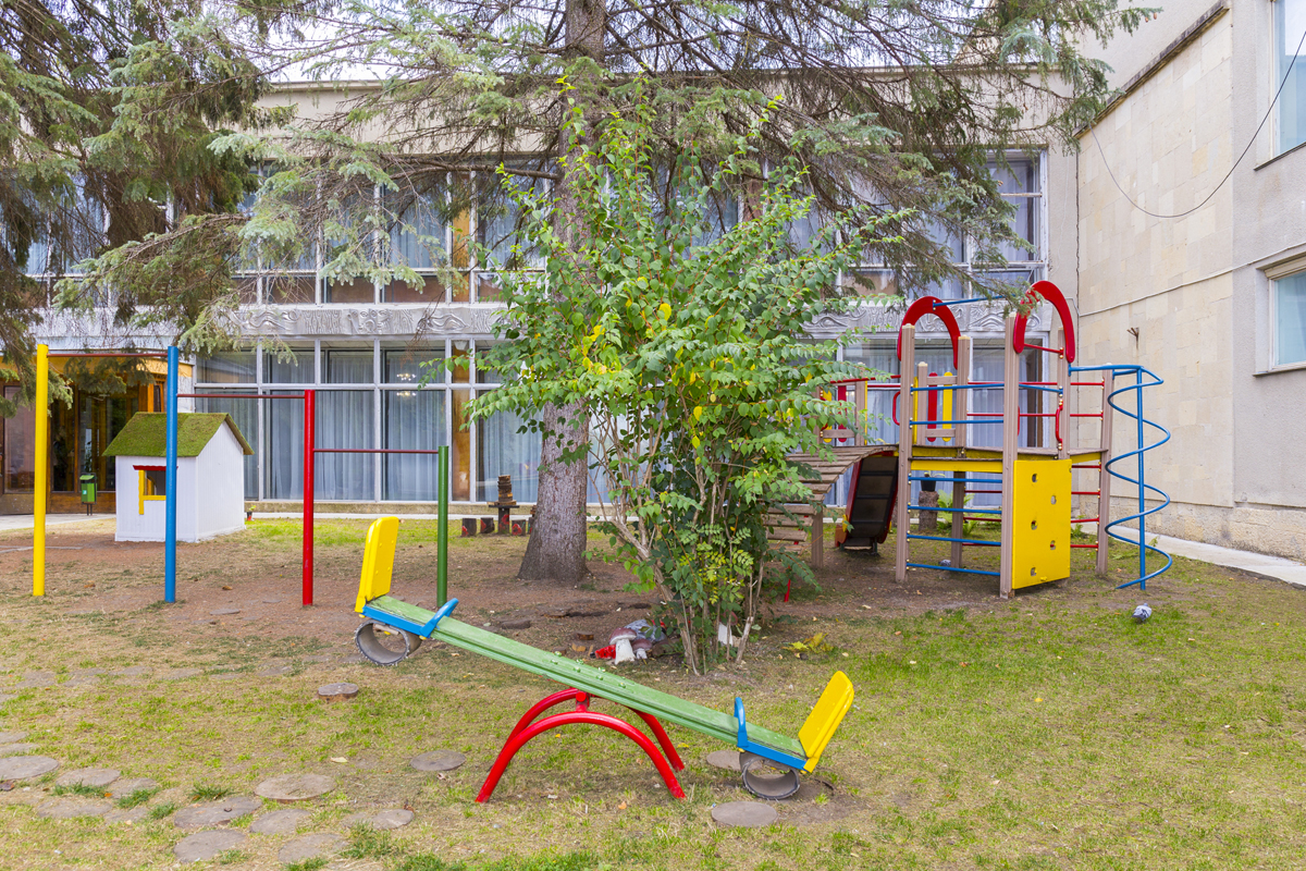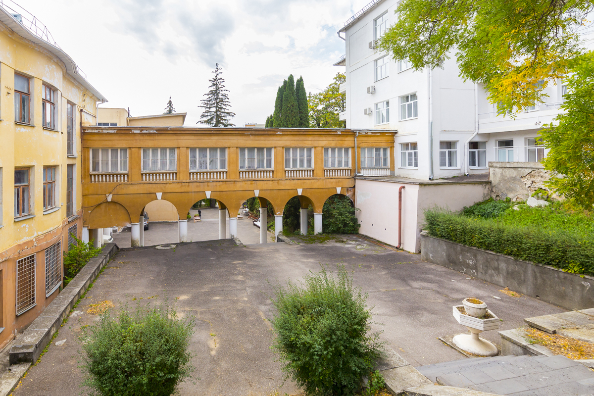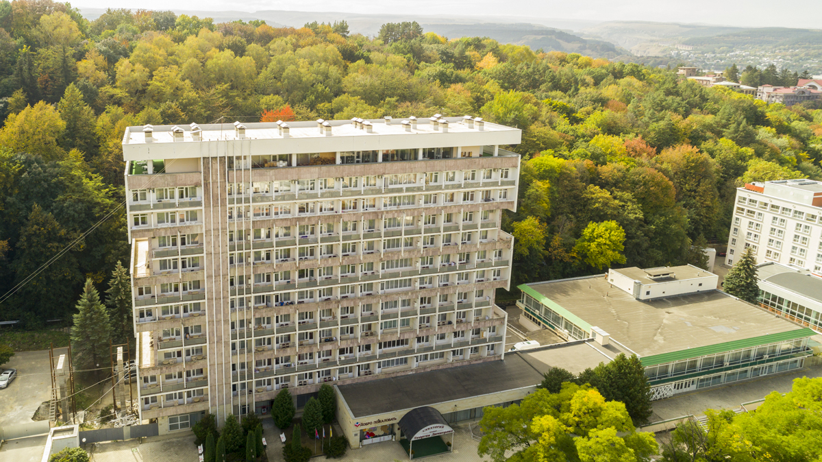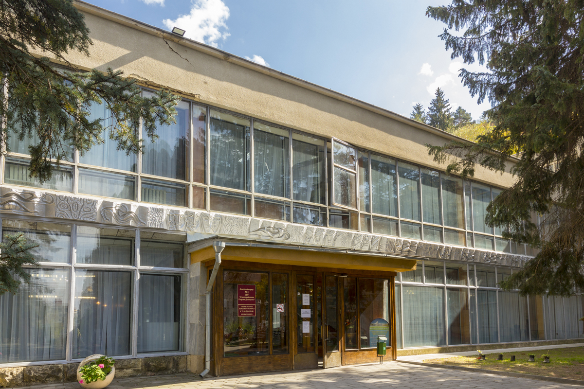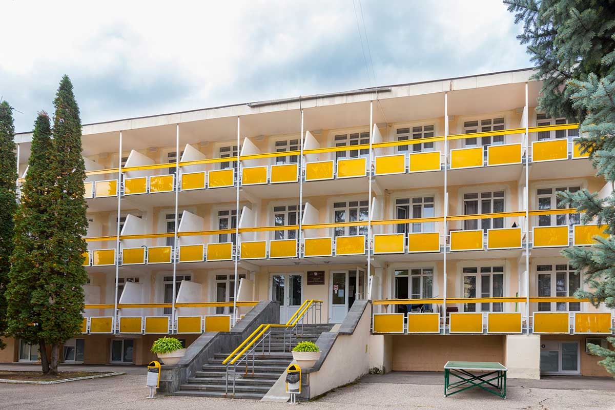 Корпуса здравницы окружены густой растительностью, а по ее территории проложены тенистые аллеи с удобными беседками, площадками для занятий спортом и климатическими ваннами.