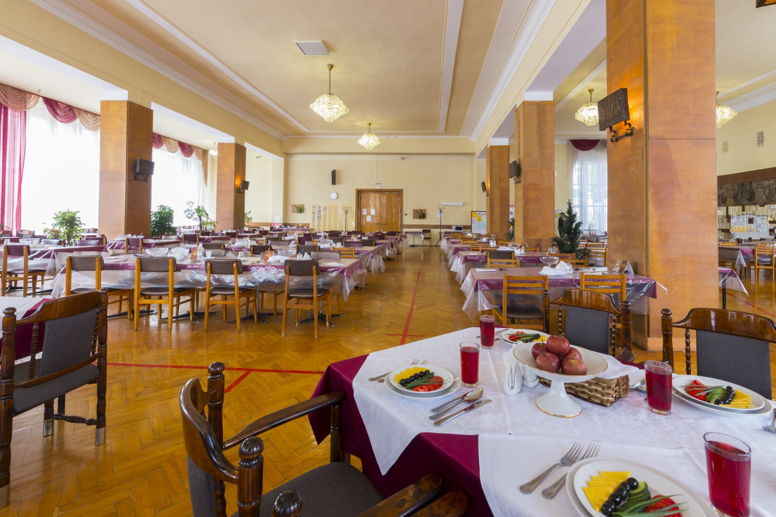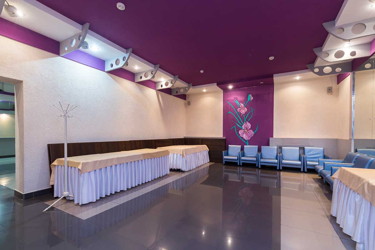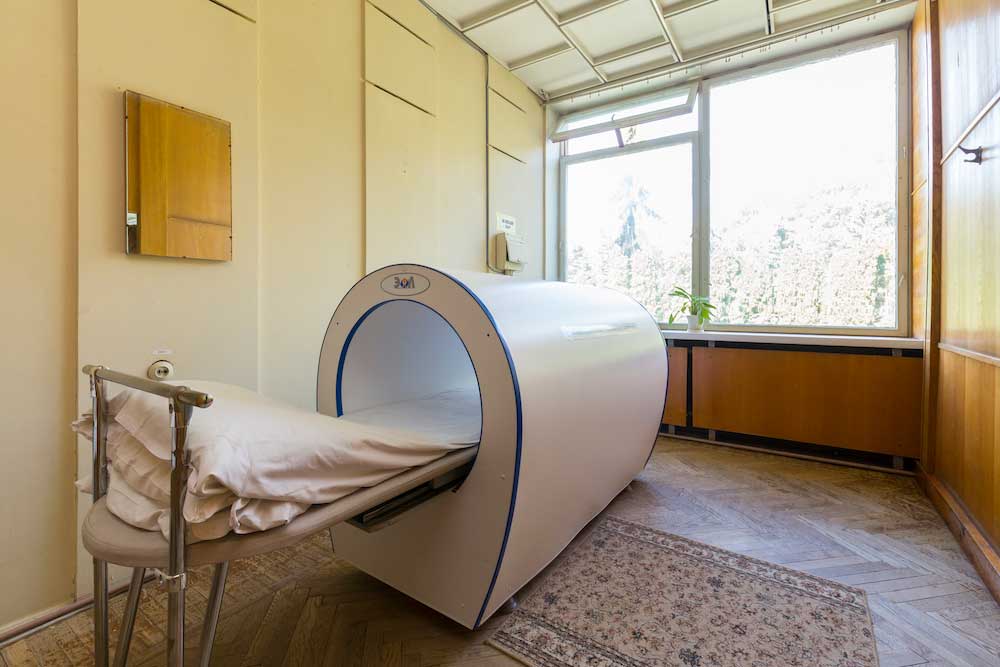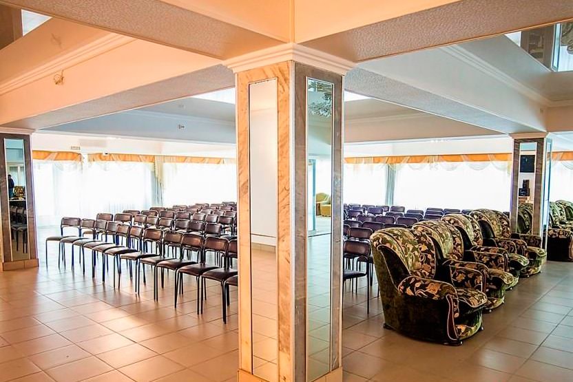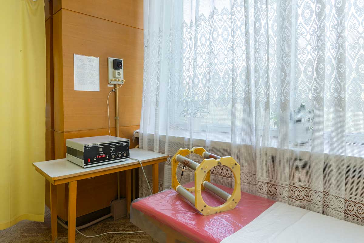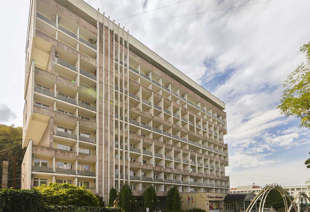 Корпуса здравницы окружены густой растительностью, а по ее территории проложены тенистые аллеи с удобными беседками, площадками для занятий спортом и климатическими ваннами.