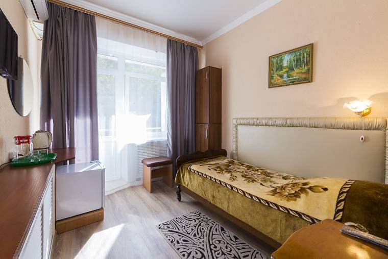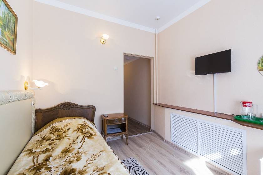 Номер площадью 14 кв.м с одной односпальной кроватью и раскладной кроватью.